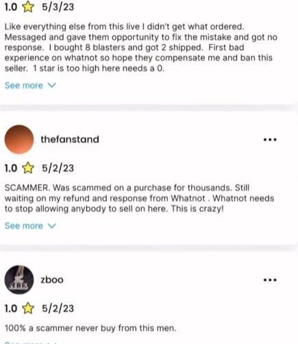 Nothing but 1 stars. How many does it take for Whatnot to take action? Who knows.